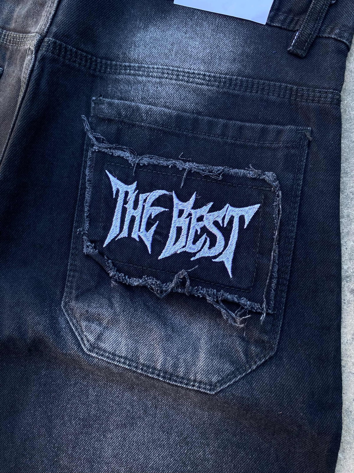 Bordado en bolsillo trasero con deflecado